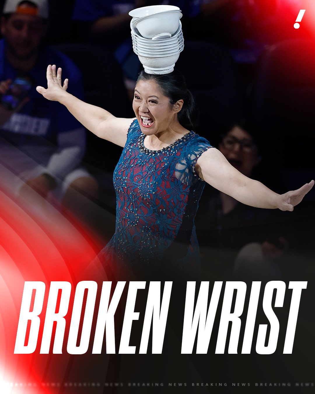 32年生涯!顶碗大妈从独轮车摔下左手腕受伤 坐轮椅离场