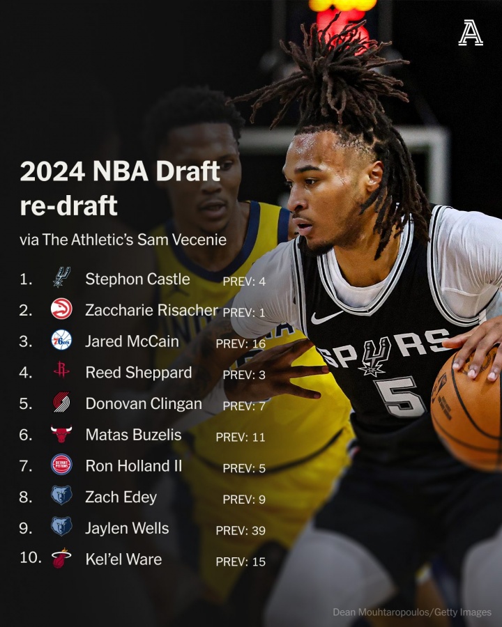 08月15日讯 TA记者Sam Vecenie重排了2024年选秀前十,以下是详细情况: