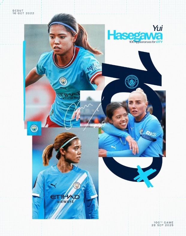 9月29日讯 曼城女足官方消息,长谷川唯完成曼城100战里程碑。