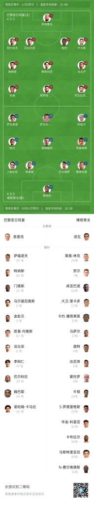 06月20日讯 北京时间6月20日9点,世俱杯B组第二轮,巴黎将对阵博塔弗戈。赛前首发公布。