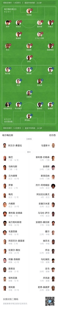 切尔西替补:44-斯洛尼纳、12-菲利普-约根森、39-彭德斯、4-阿达拉比奥尤、19-马马杜-萨尔、34-乔什-阿奇姆彭、30-安塞尔米诺、14-埃苏戈、22-霍尔、32-乔治、11-马杜埃凯、20-若昂-佩德罗、38-吉乌、15-杰克逊