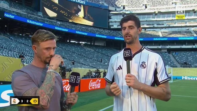 7月6日讯 皇马3-2击败多特,有惊无险地挺进世俱杯4强!赛后,库尔图瓦在场边接受了DAZN采访。