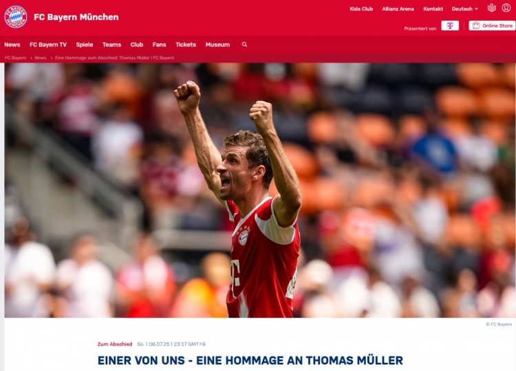 7月7日讯 拜仁止步世俱杯8强,这场比赛也是托马斯-穆勒代表拜仁踢的最后一场比赛,拜仁官网发布长文,向这位俱乐部传奇致敬。