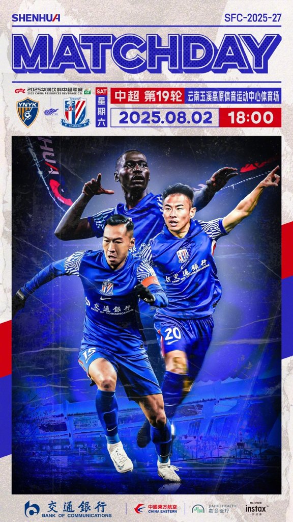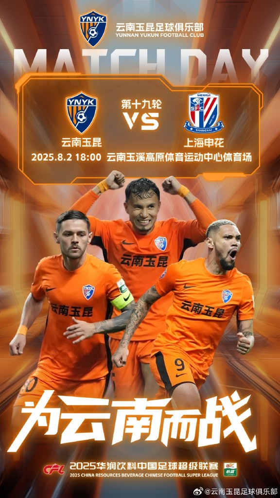 08月02日讯 北京时间18:00,中超第19轮,云南玉昆主场对阵上海申花,赛前双方首发阵容出炉!