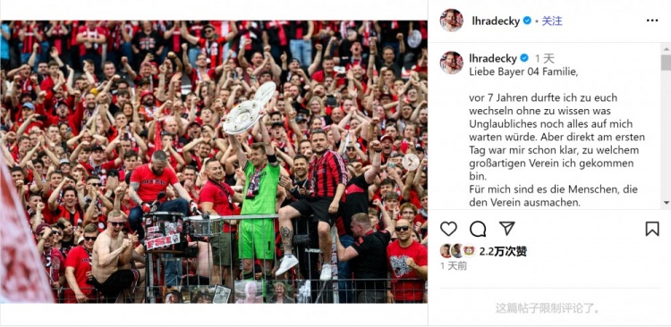 赫拉德茨基写道:“亲爱的勒沃库森大家庭