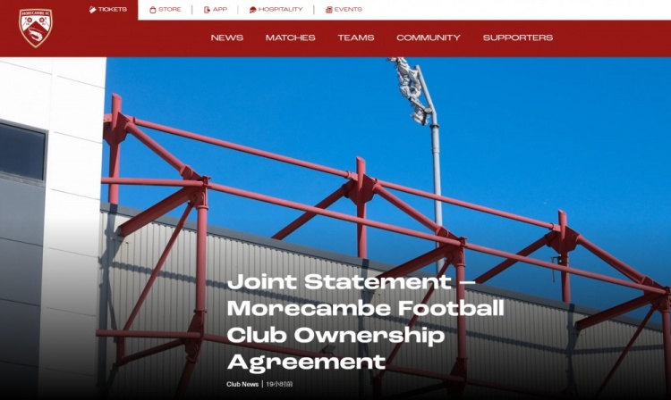 8月15日讯 莫克姆俱乐部官网消息,体育投资公司Panjab Warriors和邦德集团投资有限公司高兴地宣布,双方已原则上就莫克姆足球俱乐部的多数股权转让达成协议。